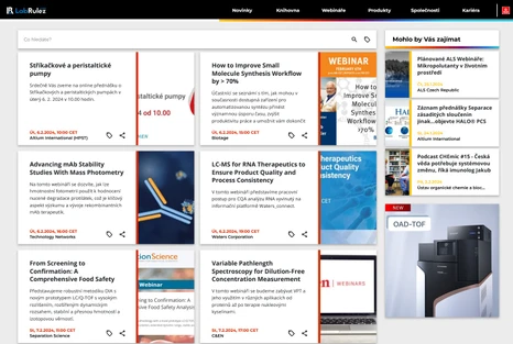 Tento týden 6 webinářů: Stříkačkové a peristaltické pumpy, Syntéza malých molekul, mAb a hmotnostní fotometrie, RNA a LC/MS a Waters_connect, LC/Q-TOF a Potraviny, VPT a GMP.