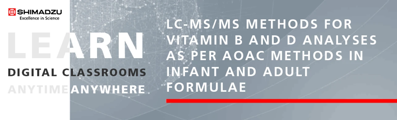 Vitamin B and D are important micronutrients to maintain good health. They are often fortified in various foods such as infant and adult formulae for added health benefits. Over the years, there are many AOAC methods dedicated to the analyses of different vitamin B and vitamin D compounds in infant and adult formulae. In recent years, many AOAC methods use LC-MS/MS to analyse both these vitamins. In this webinar, I will discuss about the different AOAC methods and the sample preparations in the analysis of vitamin B and D. I will also share some of the application development works done closely following AOAC methods using Shimadzu LC-MS/MS.