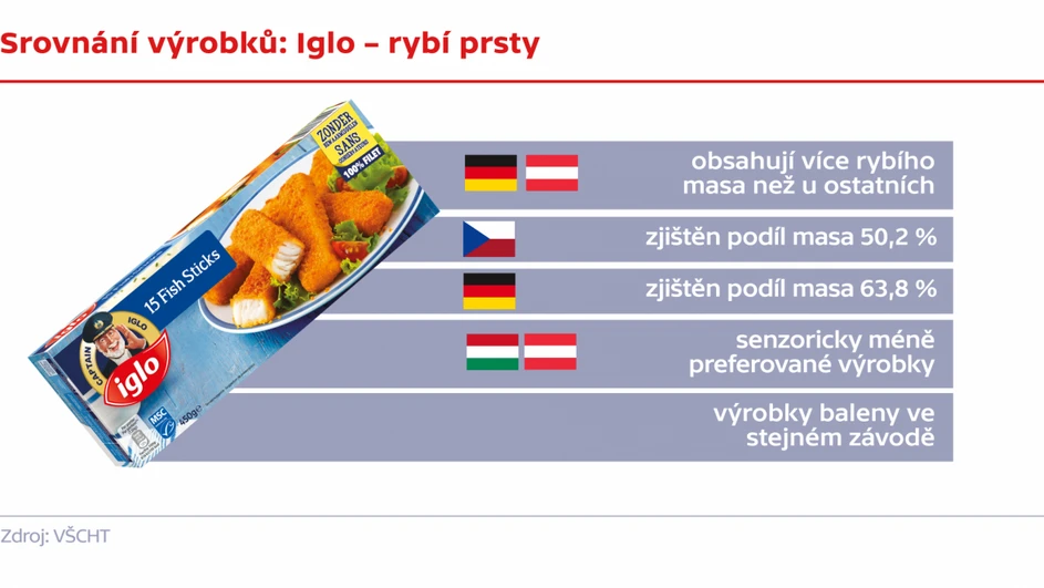 Průzkum Vysoké školy chemicko-technologické v Praze (VŠCHT) potvrdil, že v různých zemích Evropské unie se často liší výrobky, které mají stejný název i obal.